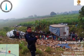 Josél Moctezuma La volcadura de un tractocamión cargado con cientos de cajas…