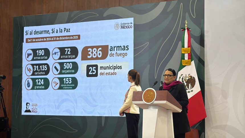 En el marco del programa “Sí al desarme, Sí a la Paz”, Rodríguez Velázquez detalló que la coordinación con el gobierno estatal permitió el canje y retiro voluntario de 386 armas de fuego en 25 municipios de Puebla, además del aseguramiento de miles de cartuchos, cargadores, granadas y otros artefactos, contribuyendo a reducir riesgos en las comunidades.