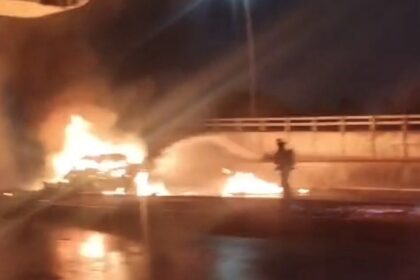 Choca y se incendia patrulla en la autopista México–Puebla; muere un policía estatal