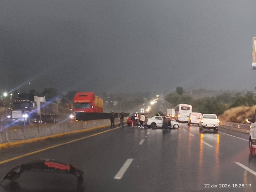 De acuerdo con los primeros reportes, el percance involucró a varios vehículos y habría sido provocado por las condiciones del pavimento mojado derivadas de la lluvia en la zona, lo que redujo la visibilidad y la adherencia de las llantas.