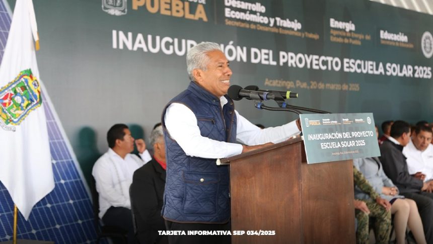 ACATZINGO. Pue.- El secretario de Educación Manuel Viveros Narciso, asistió a la Escuela Ignacio Romero Vargas para la puesta en marcha del “Proyecto Escuela Solar 2025”. Esta iniciativa tiene como objetivo dotar a las instituciones educativas del Estado de Puebla con paneles solares, lo que permitirá una reducción significativa en el costo de la energía eléctrica.
