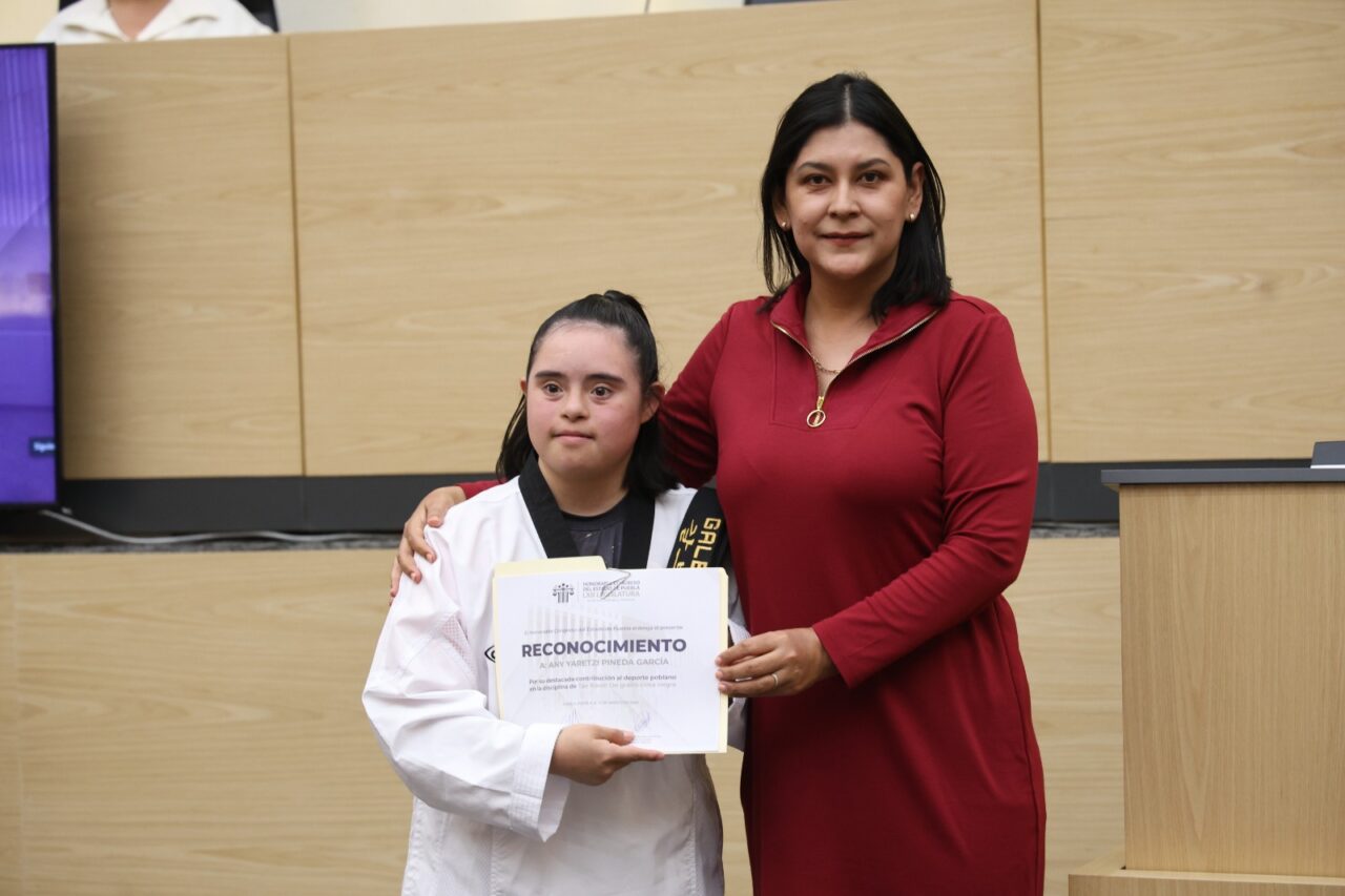 La diputada Ana Lilia Tepole Armenta encabezó la entrega de un reconocimiento a Any Yaretzi Pineda García, por ser la primera persona con síndrome de down en obtener cinta negra en taekwondo, y representar un ejemplo de lucha, disciplina y perseverancia.