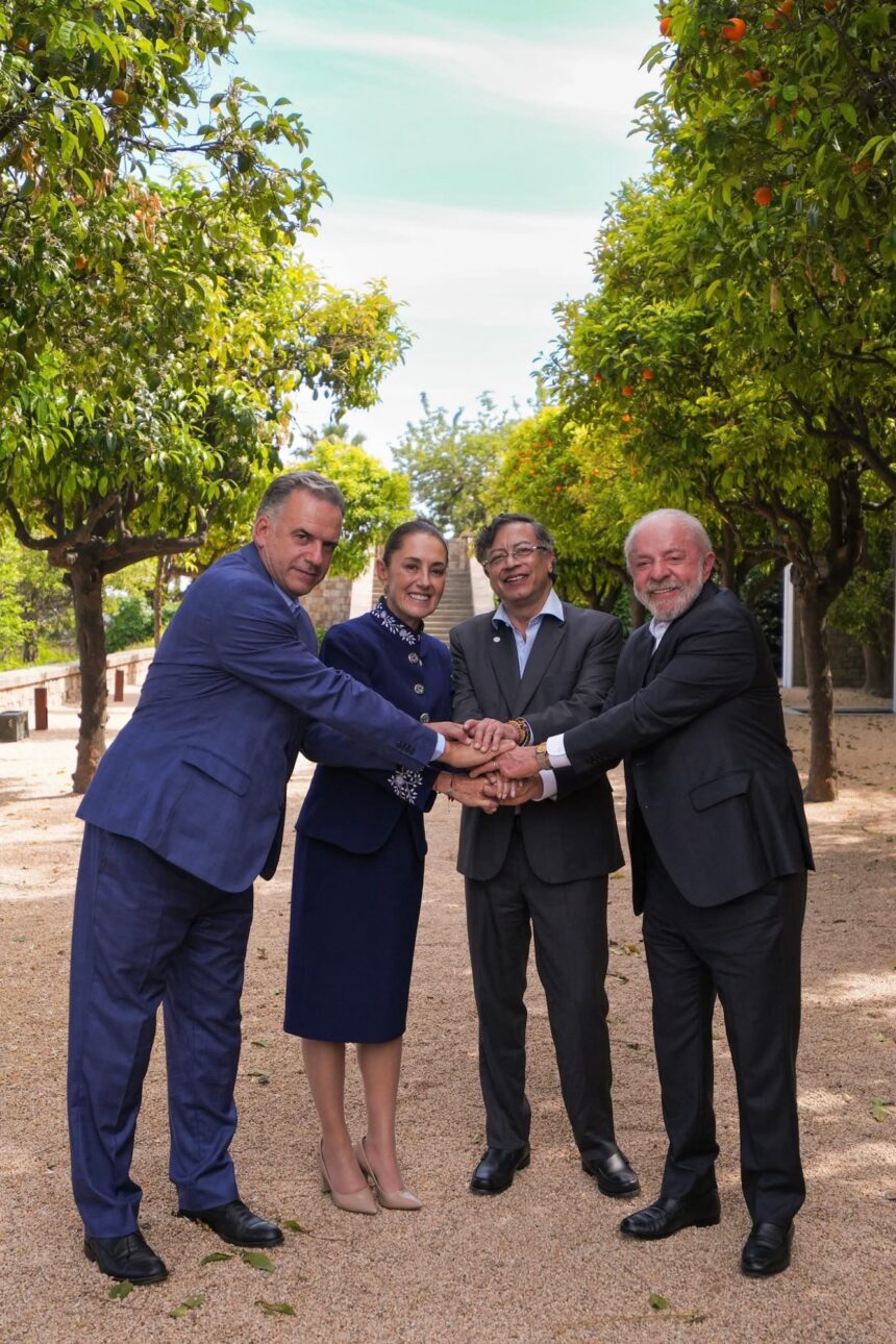 Destacó que acudió a la IV Cumbre en Defensa de la Democracia a nombre de un pueblo trabajador, creativo y luchador, con una historia milenaria que reconoce su origen en las grandes culturas originarias que fueron acalladas, esclavizadas y saqueadas, pero nunca derrotadas ni conquistadas. Y cobijada por el legado de Miguel Hidalgo, José María Morelos y Pavón, Leona Vicario, Josefa Ortiz Téllez-Girón, Benito Juárez, Emiliano Zapata, Francisco Villa, Francisco I. Madero, Venustiano Carranza, Felipe Ángeles, Adela Velarde, Hermila Galindo, el General Lázaro Cárdenas y Frida Kahlo, así como de un pueblo que, en 2018, decidió que el desarrollo democrático existe bajo el legado de “Por el bien de todos, primero los pobres” y que, en 2024, rompió su historia de machismo y eligió a su primera mujer Presidenta.