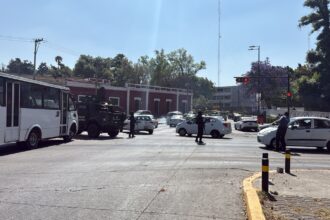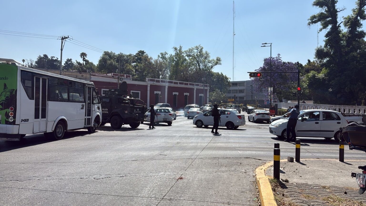 Choque entre unidad blindada de SSP y transporte en Blvd. 5 de Mayo