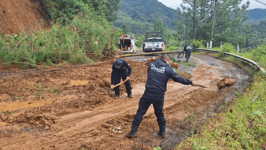 En un acto de apoyo y solidaridad con vecinos de la colonia Lomas de Acatlán, elementos de la Delegación Huauchinango de la Policía Auxiliar brindaron apoyo para liberar caminos obstruidos, con el objetivo de garantizar el acceso y tránsito seguro en las zonas afectadas por las recientes lluvias.