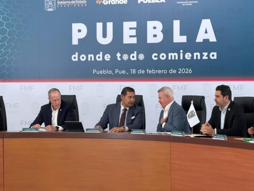 El gobernador Alejandro Armenta, acompañado por el director técnico Javier Aguirre y directivos de la Selección de fútbol de México, presentaron este martes en conferencia de prensa el primer partido de preparación del combinado nacional en Puebla rumbo a la próxima Copa del Mundo.