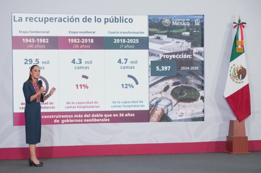 Resaltó que en siete años de la Cuarta Transformación se han creado 4 mil 700 camas, en comparación con los 36 años del periodo neoliberal en el que se crearon 4 mil 300 camas. Además, detalló que en lo que va de 2026 se integraron 18 mil 962 especialistas y en el neoliberalismo se incorporaba, en promedio, máximo 8 mil médicas y médicos.