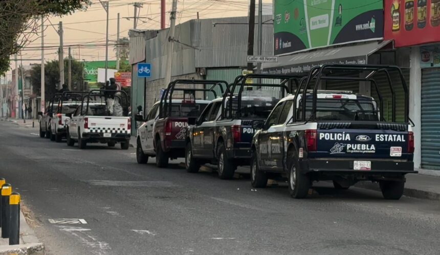 Elementos de diversas corporaciones de seguridad realizan un operativo en el cruce del carril de La Rosa y la 46 Norte, a unos metros del Mercado Morelos, en la capital poblana.